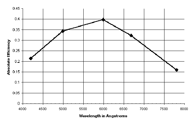 は、簡素でかつ非常によく定義された光学系で、これを今回利用してベガを測定し、併せて大気伝播も測定しました。このデータによって、CCDカメラにおける「ベガ」の絶対感度を計算することができます。その結果を下記